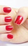 Mas, voltando à Gabi (rsrsrsrsrsrs), ela escolheu hoje pintar as unhas com o Vermelho de Guerra da Impala. Como achou que ficou meio xoxo para a idade dela, ela optou por passar por cima o Glitter Rouge da Impala. E para completar a apresentação, resolveu colocar uma florzinha do carimbo da Konad, com Cromo dourado da Impala, também.