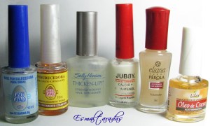 Em um post anterior alguém lamentou não ter unhas fortes. E, com base nessa “reclamação”, eu resolvi revelar o que eu tenho feito para ter unhas fortes e bonitas. Além de fazer tudo o que eu já falei acima, eu também uso bases diferentes antes de aplicar os esmaltes. Primeiro eu passo óleo de cravo e espero secar. Depois aplico uma das 5 bases que tenho, e por cima o esmalte. Só que eu alterno o uso delas, ou seja, eu uso uma das bases cada vez que faço as unhas. Na próxima vez que faço as unhas, uso a segunda base (depois do óleo de cravo), na vez seguinte, uso a terceira base, e assim sucessivamente, até voltar para a primeira.