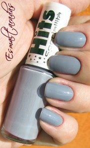 Pois bem, peguei o esmalte cinza clarinho HITS 204 e resolvi adicionar um toque azulado ao bichinho. O vidro estava inteiro, conforme comprei na loja. Então, usei o espaço mesmo que tinha no vidro para fazer o meu Franken. Adicionei ao 204 algumas gotas do 682 também da HITS. Devo ter usado umas 10 gotas “gordas”. Só que ele ficou claro ainda, e eu resolvi escurecer com algumas gotas do CASTING da ELIANA. Talvez tenha usado umas 6 gotas. Ele ficou um cinza médio azulado lindíssimo. Quem viu ficou simplesmente apaixonada pela cor, e já me pediram emprestado também! rsrsrsrsrsrss Definitivamente não conheço esmalte nacional com esse tom. Ficou bem invernal! Aliás, vou batizar meu Franken com o nome de “Winter Sky” (ou “Céu Invernal”, se preferirem). Agora só falta criar uma irmãzinha pra ele, rosa!