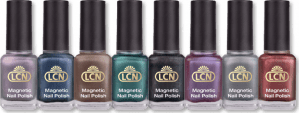 Para quem ainda não sabe da grande novidade mundial, foi lançado o esmalte magnético, que é como um esmalte comum, mas que contém micropartículas que, logo após a esmaltação, são atraídas por um imã com padronagem de riscas diagonais ou estrela.