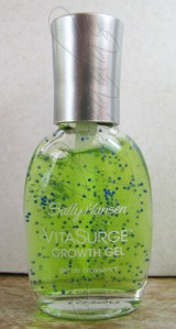 Na minha viagem a Santa Monica (California), no início deste mês, eu trouxe vários produtos para fortalecimento e crescimento das unhas. Venho usando alguns deles desde o início do mês. Um desses produtos é o gel de crescimento da linha Vita Surge, da Sally Hansen, que contém esferinhas com vitaminas A, C e E, e ainda tem cheiro de licor de pêssego, huaahhuahuahuahuahu.