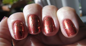 Há também os esmaltes com glitter de diversos tipos, inclusive holográficos (ou 3D), com diversos tamanhos, texturas e cores. Dentre esses esmaltes estão três top coats da Sephora, o ONLY GOLD FOR ME (glitter dourado), TRAFFIC STOPPER COPPER (glitter cobre) e FLURRY UP (glitter prata). Desses três, eu só tenho os dois primeiros, porque o prateado está sempre em falta nas lojas, então não consegui comprar. Esses top coats dão um toque indubitavelmente diferente a qualquer esmaltação. Tudo bem que fica uma coisa meio drag queen, mas dependendo da ocasião e da combinação que se faça, pode ficar très chic!