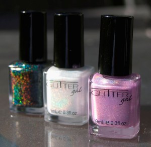 Por falar em holográficos, eu comprei dois da Rivka, e um deles, inclusive, é o Georgina. O outro que eu comprei foi o Blair. E como a Hits já está vendendo sua coleção de holos, eu aproveitei e fiz minha comprinha. Comprei todos os 13 holos deles, que parecem realmente que vão desbancar os da Rivka. Mas como não vi ao vivo e em cores nenhum deles nas minhas unhas, não vou falar nada ainda. Vou primeiro aguardar meus holos chegarem. E por falar em mais holo, a Glitter Gal lançou 3 novos holos, sendo um verde (Lizard Belly), um rosinha (Frappe) e branco (Light as a Feather). Vocês já tinham visto holográfico branco antes? Em primeira mão, o Kerry, dono da GG, me enviou as fotos. Então dê uma olhadinha nisso e babe! Infelizmente eles ainda não incluíram no site deles, que está passando por uma atualização, e os pedidos têm que ser feito por email. Quem quiser me fale que eu já estou com uma listinha quase pronta pra mandar de novo pra GG.