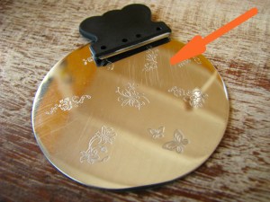 Quando comprei meu kit de carimbo e usei pela primeira vez, fiquei com uma dó danada de como a plaquinha ficou com aquele raspador horrendo. Ficou tudo arranhado e feio. Nas próximas que comprei, não quis dar o mesmo fim, e tratei de pensar em uma forma de proteger minhas plaquinhas para que elas ficassem sempre novinhas. A solução que encontrei foi usar um cartão de pvc velho, tipo cartão de crédito, que era um ingresso de fórmula 1. Cortei o cartão e uso ele como raspador. Funciona perfeitamente e não arranha a plaquinha. Depois que passei a usar o cartão nas plaquinhas novas, elas estão ainda como novas.