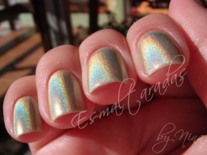 Gurias, esse é, sem sombra de dúvidas, meu holo mais lindo… e ordinário também. Aqui em casa apelidamos ele de Unibanco 30 horas (eu sei que o Unibanco já era, mas como eu simpatizava com o banco, não atualizei o nome), porque esse safado dura(va) no máximo 30 horas, contadinhas no relógio. Era fechar 30 horas que ele descascava adoidado. Masss, eu não me dei por vencida e saí à caça de algo que me salvasse. Eu realmente não me importo de trocar o esmalte com frequência (aliás, adoro fazer isso), mas 30 horas já é falta de respeito né?! Fora que uma coisa é eu decidir trocar de esmalte. Outra bem diferente é ter que trocar por falta de escolha.