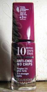 E aí? É lindo ou não? Esse é o esmalte sem nome, só número, 17, da Bourjois, da linha 10 jours, que promete uma duração de 10 dias. Lamento informar a vocês, mas eu não deixei ele sobreviver 10 dias na minha unha, pra confirmar se essa promessa é válida ou não. Nem tem como né??? Com tanto esmalte pra usar eu já estou surtando. Mas posso dizer que ele é muito lindo. É um magenta bem escuro. Na foto ele está meio vinho, mas não é bem assim não… Vocês bem sabem como é um parto captar bem o tom das cores quentes com a câmera.