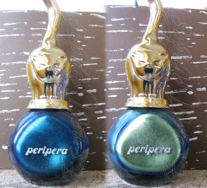 Já o Prism Navy, embora seja uma cor linda, eu achei muito parecido com o YODEL ME ON MY CELL da OPI e mais ainda com o DIVE BAR da ESSIE. Porém, o Peripera parece ter um pouquinho mais de brilho verde. Se olhar os 3 juntos de longe, parecem idênticos. Só na mão e pertinho a gente vê a diferença.