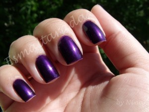 Ele tem uns nano-brilhinhos rosas que aparecem apenas no sol e fazem toda uma diferença na cor. Dependendo da iluminação o Violet 148 fica mais quente ou mais frio (puxado pro roxo azulado).
