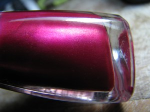 A cor na realidade é mais magenta do que na foto. Nessa foto a cor está meio avermelhada. É, de longe, o magenta mais bonito que nós temos. Tem uma cintilância lindíssima, e nas unhas fica uma coisa!