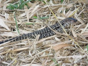 Eu tenho pavor de lagartixas (sério, de passar mal mesmo), imaginem só de um lagartão desse! Mas o danado era bonito, tenho que admitir. Sem falar no “andar” dele, muito engraçado de ver. E quando o bicho resolve correr?! Gente, ele é muito rápido! Eu queria filmar, mas não tinha qualquer chance de eu conseguir fazer isso, porque não tinha como acompanhar o trote da criatura. E o medo que ele enveredasse e viesse pro meu lado?!