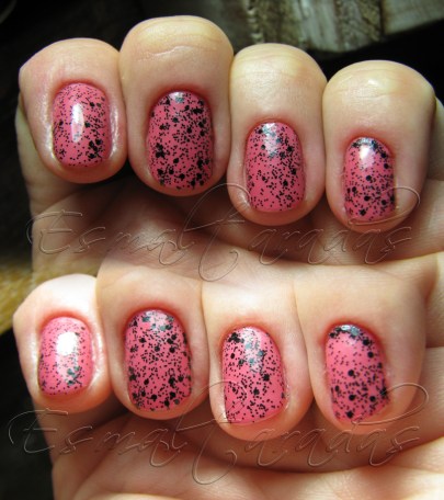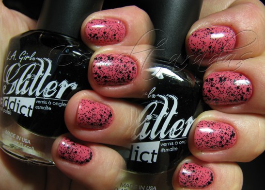 Tentando seguir as cores da padronagem francesa, rosa e preto, eu resolvi dar um toque diferente ao meu rosinha, usando esse glitter preto da LA GIRL, chamado UNINHIBITED.