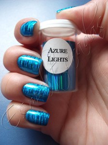 Esse nail foil, Azure Lights, tem umas listrinhas holográficas, que ficam muito lindas no sol, nada discretas, hehe. Deu vontade de colar esse foil por tudo, uahauhauahua. Sério.