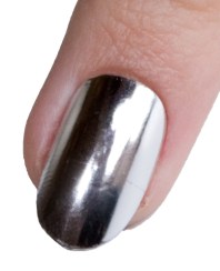 Eu me animei todinha quando vi, e já tinha colocado na minha wishlist, quando, de repente, jogaram um balde de água gelada em mim. O Minx custa os olhos da cara (dá pra entender perfeitamente por que celebridades trocam de Minx como quem troca de roupa) e só pode ser aplicado e removido por profissional treinado, porque ele não é um adesivo comum. Ele é aplicado e removido com calor (e, até onde eu lembro, ele dura bastante na unha). Essa pequena “dificuldade” torna o produto caro, porque não se coloca ele em qualquer manicure. Já cansei de ver fotos de gente que se aventurou a colocar sozinha, usando o secador de cabelos, e o Minx não ficou espelhado como na foto, mas sim todo derretido e ondulado, sem um brilho sequer. Vejam neste link a aventureira de quem estou falando, e compare o trabalho de porco dela com o da foto acima, que foi aplicado por um profissional.