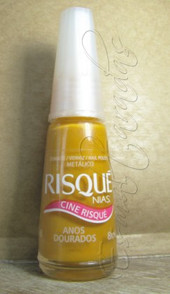 Enfim, desisti de procurar e resolvi fazer uma “filha única”, pintando a unha de amarelo com o esmalte Anos Dourados, da Risqué, que era o mais parecido com o fundo do decalque, que eu tinha.