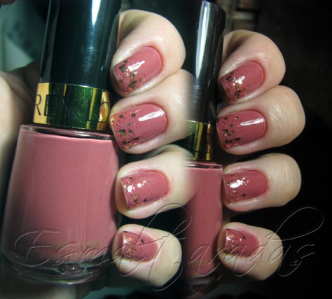 Depois que eu meti acetona em tudo, eu resolvi usar outro rosa, só que desta vez um rosa queimado: o TEAK ROSE da Revlon, que faz parte do trio de esmaltes ROSAS DIVERTIDOS da Revlon, que eu havia comprado por um preço super atraente na Sacks.