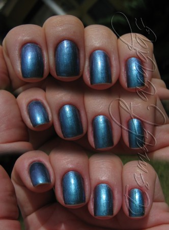 A outra mão, pintei com o Golden Green, que eu espero que sobreviva para o próximo post. Eu bem que estou gostando da “moda que estou lançando” na minha cidade, pintando uma mão de cada cor. A coisa está ficando tão séria que pintar as duas mãos com a mesma cor, agora, está começando a ficar “esquisito” pra mim, hehehehehe.