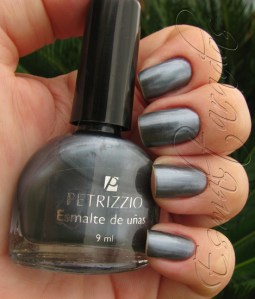 Voltando ao tópico, eu consegui finalmente pintar minhas unhas. e trago hoje para vocês um cinza levemente azulado, cintilantíssimo, chamado ONYX da marca chilena Petrizzio.