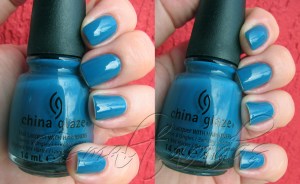 Esse esmalte é um teal muito charmoso. Duas camadas são suficientes para uma excelente cobertura. Tem um brilho ótimo.