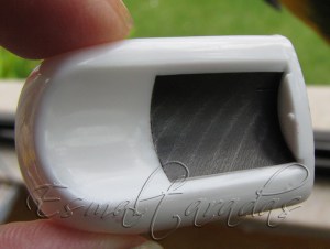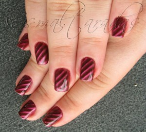 Assim como a Nina, eu também amay esse imã, porque as listrinhas são mais juntinhas. E é fácil aplicar o efeito usando esse imã, porque tem esse pontinho saliente (lado esquerdo da foto, no imã), onde apoiamos a unha (o pontinho fica debaixo da unha), então, não corremos o risco de fazer caca, a não ser que se seja muito estabanada!