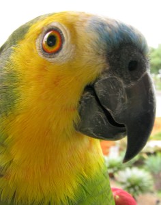 Enquanto eu tentava tirar a foto, na janela, a ave não parava de tentar pegar o “brinquedinho” que estava na minha mão. Acabei não resistindo, e o fotei também, heheheh.