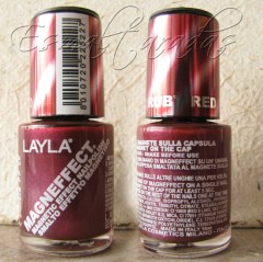 Como lembrança das unhas inteiras dela, mostrarei aqui as fotos da mani com o esmalte escolhido: RUBY RED, um magnético cacante da Layla.