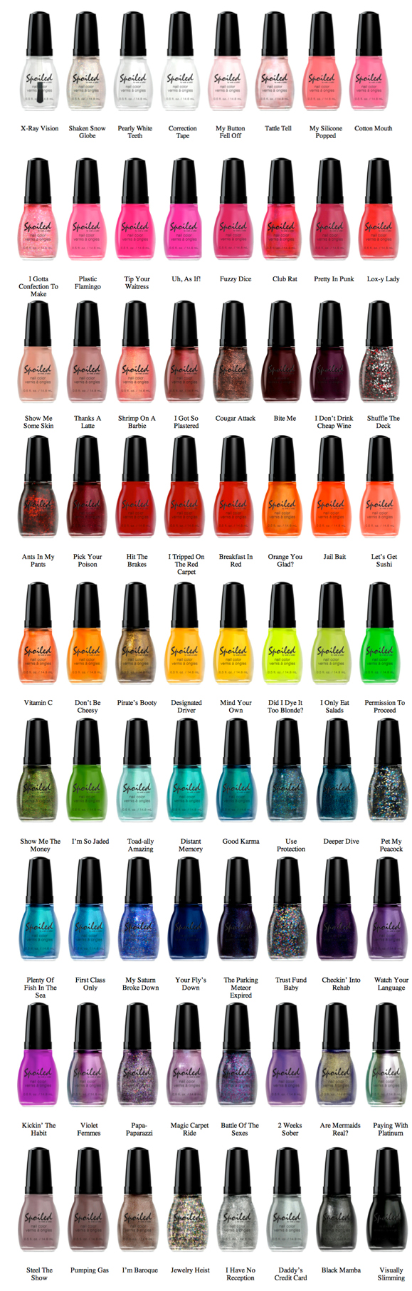 A Nina me pediu para pedir para o ex, que está nos Estados Unidos, para ele trazer um esmalte desse pra ela. Mas, como eu nunca tinha visto essa marca antes, eu achei que fosse mais difícil encontrar. Depois, fuçando na net, encontrei a foto da coleção completa, e quase enfartei com a quantidade de cores. Vi que a coleção só será vendida na rede de farmácias CVS, e assim ficou mais fácil encontrar. É claro que não vou pedir para o ex, afinal, se ele trouxer o que eu pedi pra mim já vai ser um milagre, ainda mais que foi um total de 9 homens nessa viagem, e a maioria não gosta de fazer compras, só de encher a cara. Então, prefiro arriscar com meu irmão, que está indo dia 6 para Lake Charles fazer um curso. Com esse é mais fácil de conseguir as coisas. Vamos fazer a lista, Nina!!!