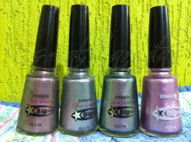 Big Universo conhecemos, só nunca vimos “ao vivo”. Andei vendo as fotos dos esmaltes no Flickr da marca, e surtei. Então passei uma listinha para a Gabi comprar lá no Rio pra gente. Pena que muitas das cores ela não achou, e nem eu, na internet.