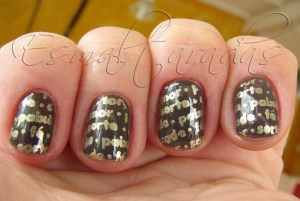 Usei o esmalte gold foil da Barry M pra carimbar. Ele é mesmo ótimo!