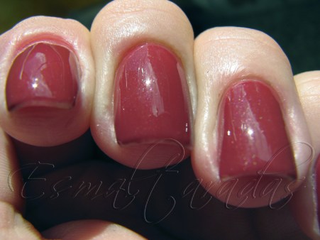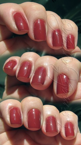 O esmalte tem um brilho bem legal, mas como minhas unhas estão cheias de desníveis (deveria ter usado a base niveladora mara da Nail Tek…), eu optei por passar o Nail Tek Quicken em cima. Não ficou super nivelado, porque o Quicken é mais ralinho que o Seche Vite, mas pelo menos melhorou um pouco o desnível, e o esmalte secou rapidinho, já que a função desse top coat é de fato secar o esmalte mais rápido.