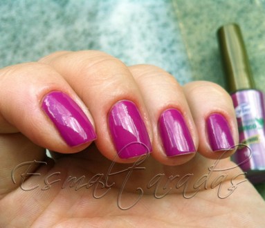 Esse é o Boca-de-Leão, da 5Cinco; esmalte cremoso, de boa cobertura, da Coleção Flores, que tem 35 cores.  É um magenta bem escuro e vibrante.