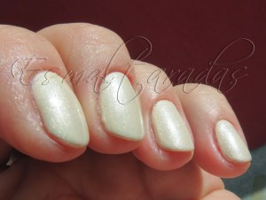 Apesar de o nome ter nome de “cristal branco”, ele na verdade tem uma cor marfim. É suuuuuper lindo esse esmalte. Só lamento muitíssimo estar sendo usado nas sabuguettes e não em unhas de tamanho decente.