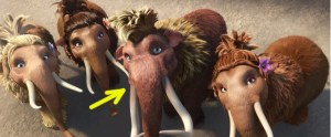 Amora está na fase de paquerar, e é caidinha por um mamute que está sempre cercado de “garotas” (ele está apontado pela seta amarela na figura abaixo).