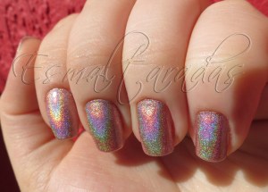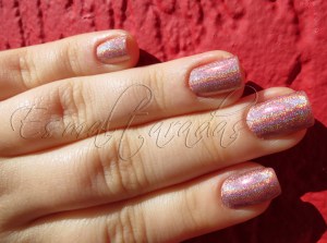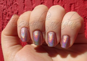 Esse Coral Glam é divo mesmo, eu que não gosto de cores muito claras adorei… Só porque é holográfico mesmo… rs
