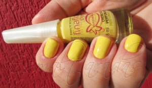 Usei na mão direita, quando fiz minha mani com o Jujuba, o outro esmalte da Fina Flor, MARSHMALLOW, o amarelinho.