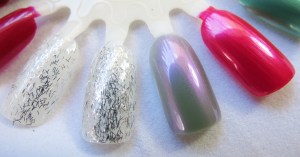 Como podem ver, junto com os esmaltes vieram dois produtos extras: lenços removedores de esmalte sem acetona, com 25 lencinhos e sem perfume e o top coat espelhado de secagem rápida.