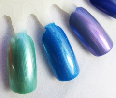 Aqui vocês podem ver mais de perto o MEU ESTILO, LOOK DO DIA e DUPLO SENTIDO sobre outro esmalte (azul cremoso)