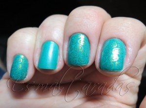 Como podem ver, o esmalte é meio fosco. Eu não passei top coat, só nos que eu carimbei. E a carimbada muda um pouco a cor original do esmalte. =/