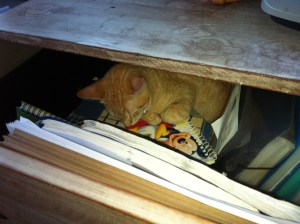 E deixo vocês por aqui com um vídeo dos meninos batendo uma bolinha, literalmente, heheheheheh, mas antes, vejam onde o outro resolveu tirar um cochilo; dentro da gaveta da minha mesa de trabalho, huahuauhhauhau