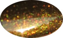 Ele é um verde musgo cheio de brilhinhos verdes, vermelhos e dourados. Nessa foto, contra o sol, dá pra ver melhor os brilhinhos.