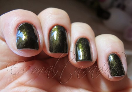 O esmalte é relativamente ralo, mas nada que duas camadas polpudas ou 3 normais não possam resolver. O resultado final é super lindo, para quem gosta de cores escuras e verde musgo.