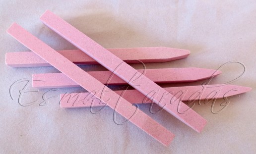 Trata-se de um bastão feito com um material mineral, duro e poroso, que tem um formato de “lápis”, só que com a ponta quadradinha. Usando ele e o Be Natural, eu consigo tirar muuuuuita pele morta das áreas ao redor das unhas, porque o Be Natural amacia a pele e o bastão esfolia. O formato da ponta é justamente para ajudar a esfoliar a frestinha entre a unha e a pele. Basta amaciar a pele com o Be ou com água e esfregar a ponta do bastão ao redor de toda a unha, esfoliando a pele. Acreditem, sai “rolinhos” e mais “rolinhos” de pele. Fazendo direitinho, aquelas pelinhas que cismam em levantar, praticamente desaparecem!