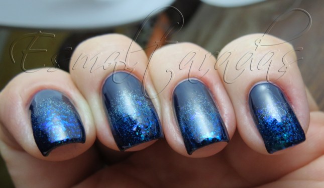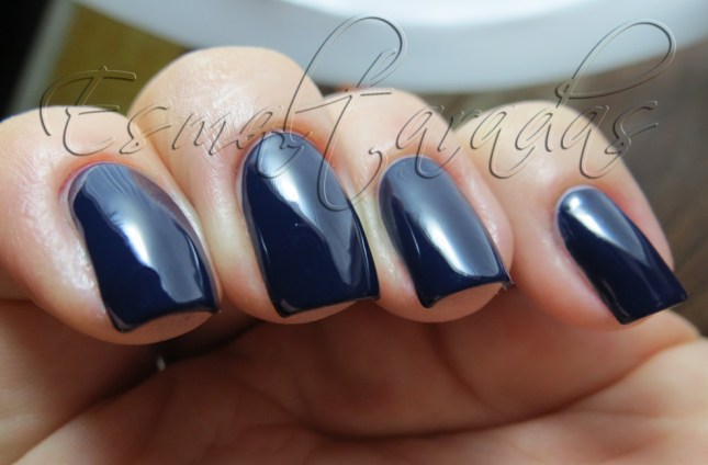 É um azul marinho tão escuro que quase parece preto. Eu até fiz esmaltação americana para não melecar a cutícula toda, senão ia ficar tudo azul, huauauhahuhau, literalmente.