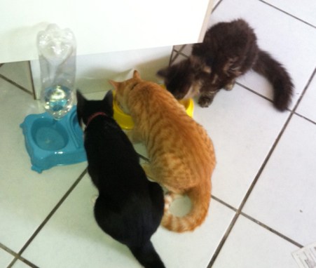 E para encerrar a semana, deixo vocês com notícias dos meninos. Troy já está mais bem aceito no “bando”. Os três já ensaiam brincadeiras juntos, e já até comem suas refeições na paz…