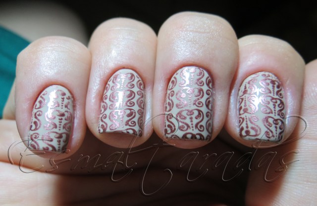 Para carimbar, usei o esmalte DELIGHT, da China Glaze. Mais um da coleção Romantique que serve lindamente para carimbar.