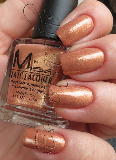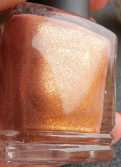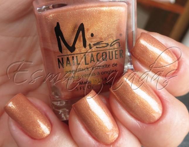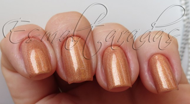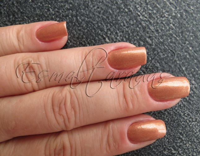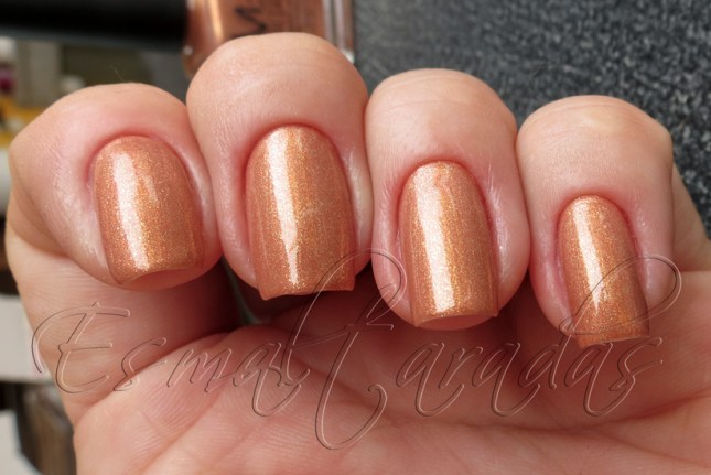 É um esmalte coral suave, com um shimmer dourado muito cacante.